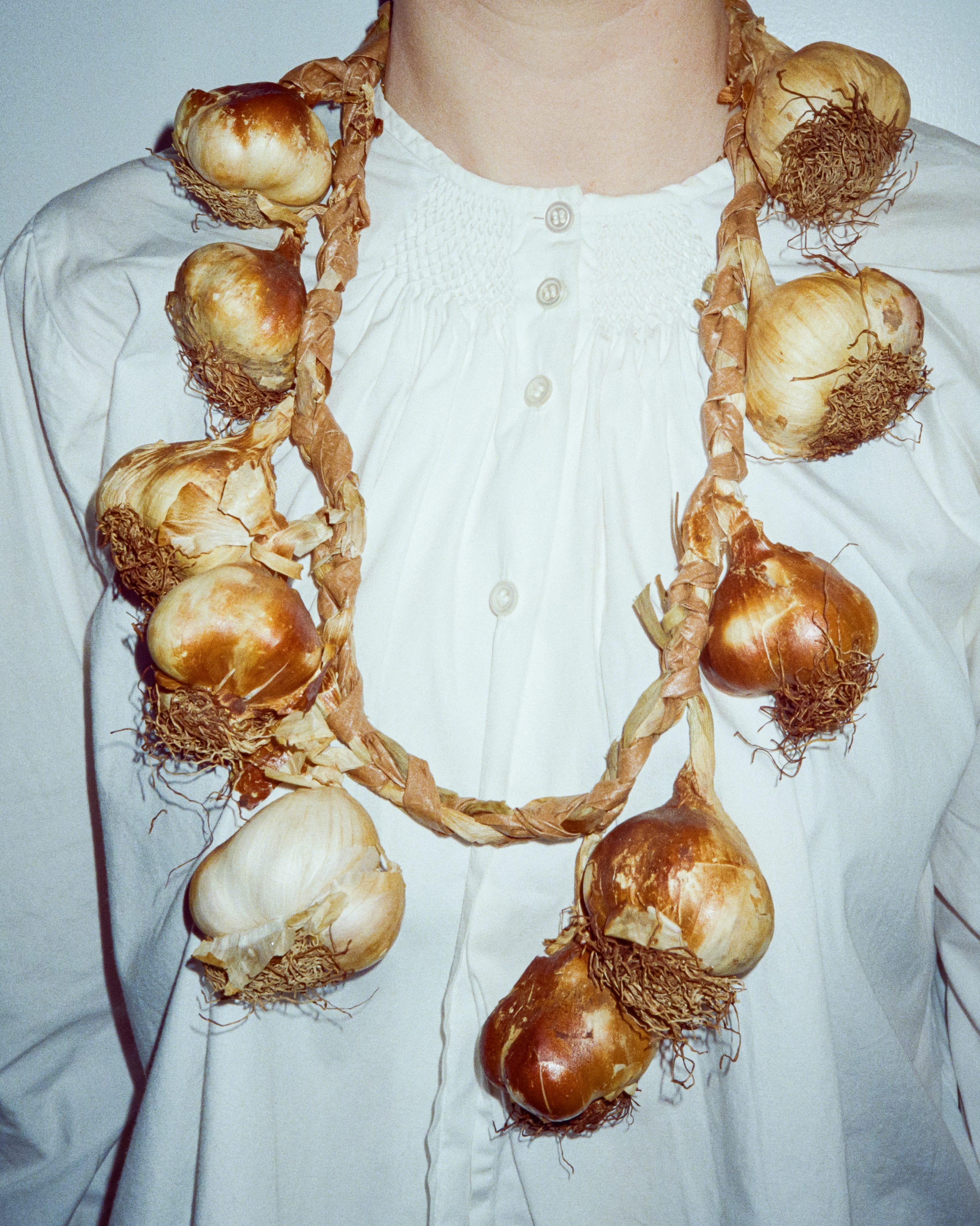 The garlic necklace was made in collaboration with Veerle Melis.