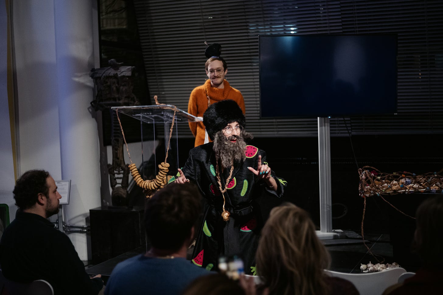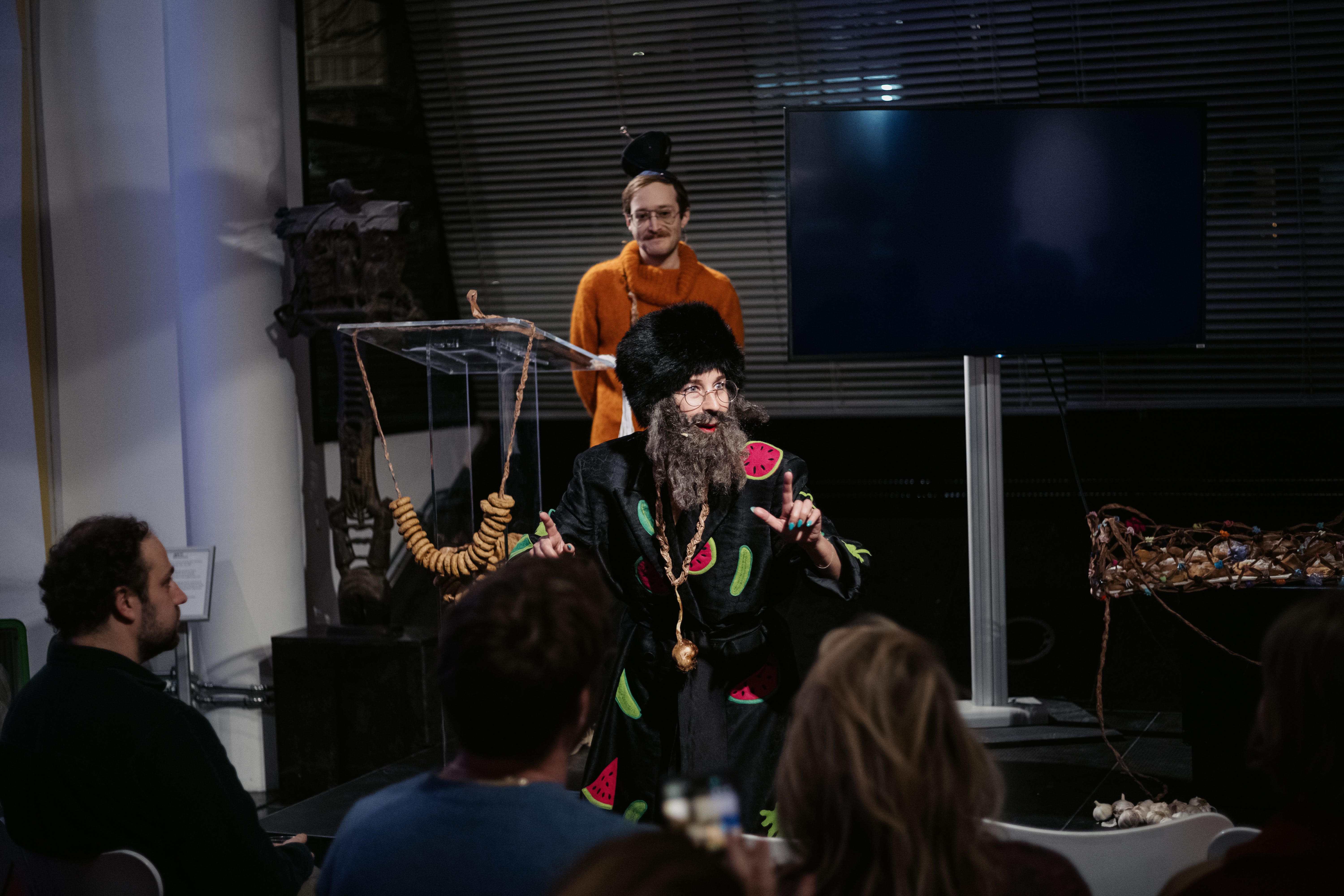 This reflection on “Judeo-Futuristic” food is derived from the performance “Judeo-Futurism” that took place on December 11th 2025 at the Jewish Museum in Amsterdam. The event – a collaboration between David Bernstein, Julie Weitz, and Lara Bongard was part of the public series called “Imagining Futures: The power of futures thinking in uncertain times” curated by Mirthe Frese. “Judeofuturism” was a collection of ideas and creative practices using ritual and humor to build Jewish futures that are imaginative, inclusive, and joyful.